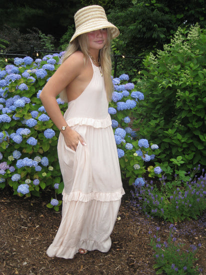 Ruffled Sleeveless Tiered Maxi Dress with Pockets